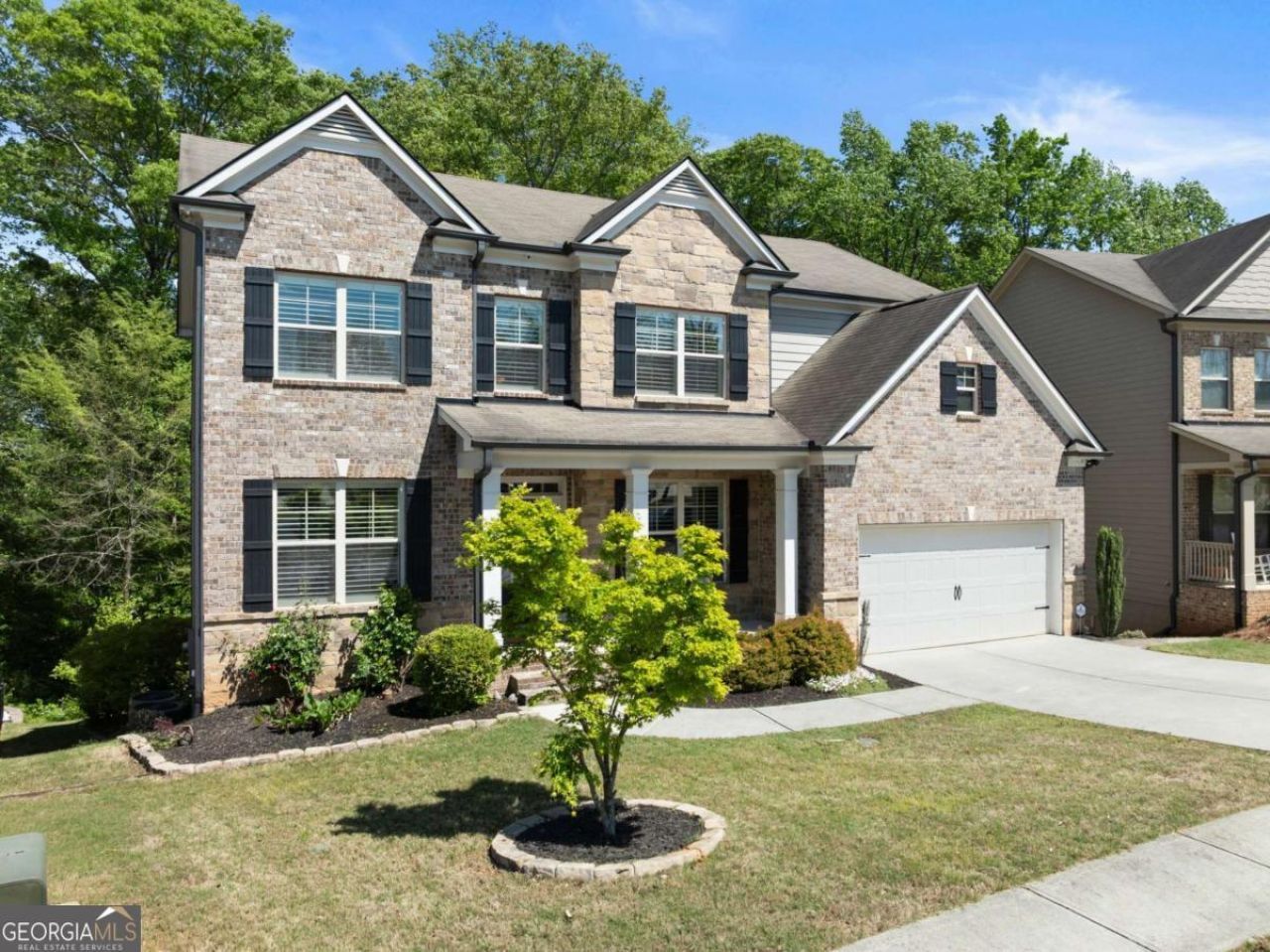 Spacious 5-bedroom, 3-bath home in Braselton offers an open layout that gives you room to spread out or gather, from the inviting family room with coffered ceilings to the spacious kitchen with a large island, stone countertops, and stainless appliances. The main level includes office or flexible space with French doors, plus a full bedroom and bath. Upstairs, the primary suite feels like a retreat with lots of room, large walk-in shower, and generous closet. Three additional bedrooms, a bathroom and a media room/loft area complete the upper level. Step outside to a screened-in deck with a fireplace overlooking the backyard, while the large patio below is complete with a fire pit. This great location has access to the Braselton Mulberry Riverwalk and a green space just out the front door. Neighborhood amenities include clubhouse, huge pool, outdoor fireplace, picnic area, playground, tennis and pickleball courts. Restaurants are just a walk or golf cart ride away. This could be the one - come see for yourself!