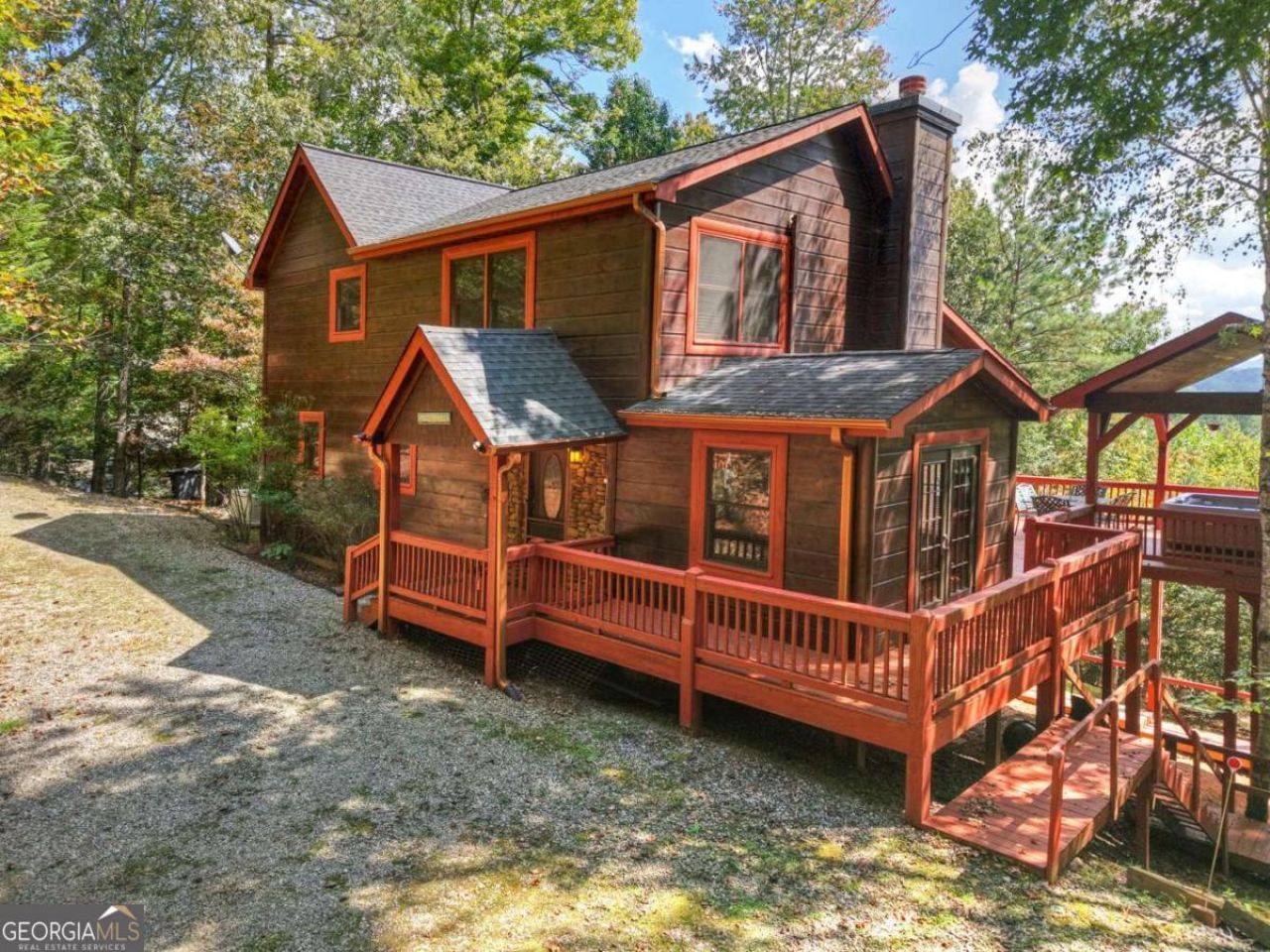 WAKE UP to the Sweeping Long-Range MTN VIEWS EVERY MORNING in this FULLY FURNISHED CABIN. From the moment you step onto the Gable-Covered STONE WRAPPED Entry, a sense of Craftsmanship & Mtn Charm immediately sets this Cabin apart. Inside, the expansive GREAT Rm creates a Striking First Impression flowing into an Extended Dining Space & Centered Around a 2-STORY Signature RIVER SLICK Stone Fireplace w/Rich Hardwood Flrs carrying thru out the Main & Upper levels. The Kitchen is both Stylish & Practical featuring a CENTER ISLAND w/Raised Bar that Invites Gatherings for casual mornings or evening entertaining. Spacious bedrooms on every level ensure Comfort & Privacy while the upper-level LOFT offers a Versatile Open Space overlooking the great room complete w/its own Corner Gas Log River Slick Fireplace. This area is ideal as a Game Rm, Office, Additional Lounge or Overflow Sleeping Quarters. The primary suite upstairs provides an Escape highlighted by a Cathedral Ceiling, PRIVATE SCREENED PORCH & SPA-LIKE BATH...Jetted tub set on a STONE BASE & Separate Shower. FULLY FINISHED TERRACE level adds even more flexibilityoffering TWO additional FAMILY ROOMS, Large Guest Bdrm & Third FULL BATH. Perfect for hosting or extended stays. Outdoor Living takes Center Stage with over 1,600 square feet of THOUGHTFULLY DESIGNED EXTERIOR SPACE including Wraparound Porches, Covered Front Porch positioned to Capture the Stunning Views, Terrace-level Walkways & a Separate Pavilion over the HOT TUB. A LEVEL FRONT YARD enhances Usability while maintaining the natural beauty of the setting. MAINTAINED & UPDATED, the home features a NEW roof, Whole-house Generator, Water Heater, Kitchen Range & Exterior Repaint completed in 2019, along with HVAC & ductwork Improvements PLUS a Loft Mini-Split system added in 2021. A NEW Furnace was installed in 2022, Plumbing Fixtures Updated in 2024, 2025 the Hot Tub Pump & Dining Rm French Doors were added. NOW is the time to Enjoy this Turn-Key Cabin.