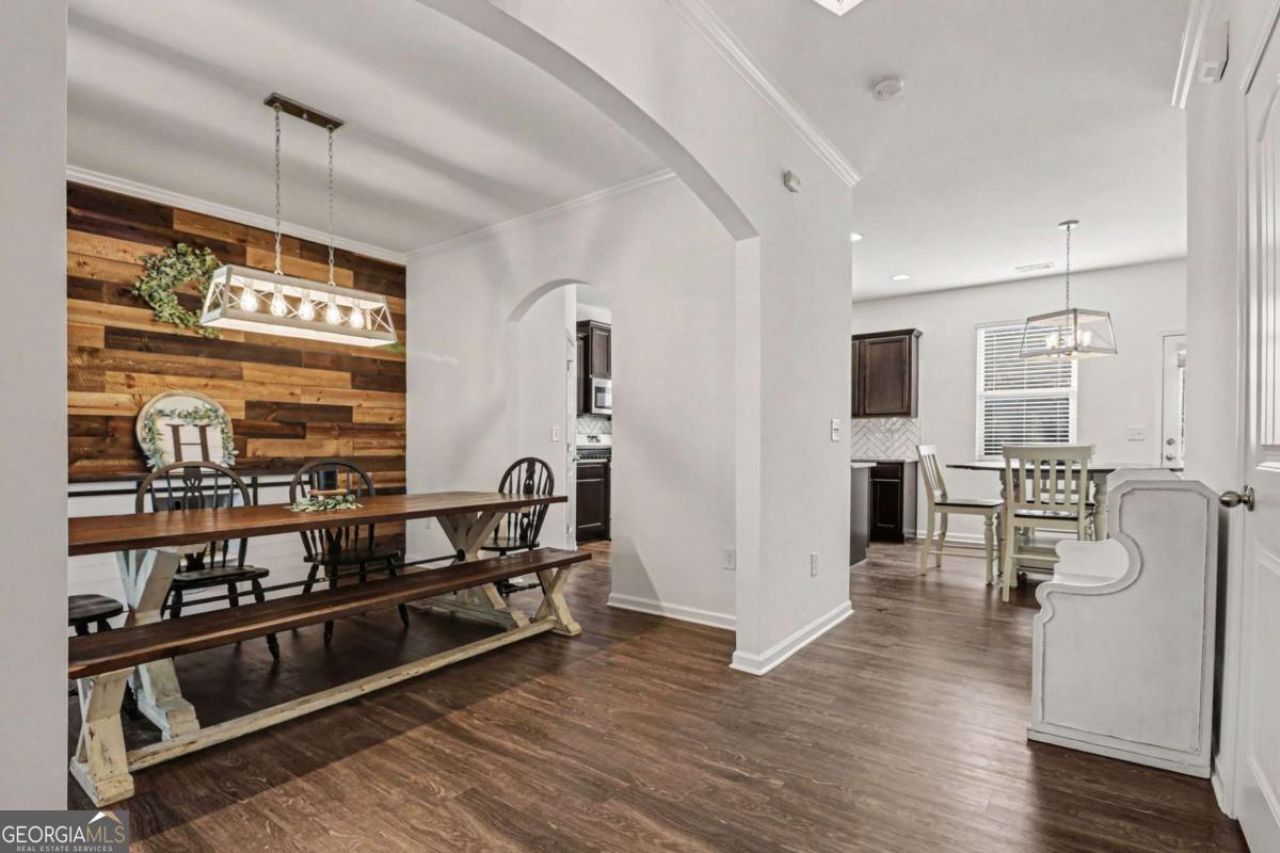 Come see this lovely, well-maintained home and discover bright open spaces throughout! Inside, beautiful and easy-to-maintain luxury vinyl plank flooring flows through the home (minus the stairs). A charming arched entryway welcomes you into the formal dining room, complete with a stylish wood accent wall and ample space for entertaining. The bright, open-concept living room features a cozy fireplace perfect for relaxing evenings. The on-trend kitchen is a true standout featuring a large island, herringbone tile backsplash, granite countertops, and stainless steel appliances. Enjoy casual meals in the sunny breakfast area with easy access to the back deck, ideal for al fresco dining. A convenient half bath completes the main level. Upstairs, retreat to the spacious primary suite with a private en-suite bath featuring dual sinks, a separate soaking tub, and a walk-in shower. Three additional generously sized bedrooms and a full bath provide plenty of space for everyone! Don't miss the unfinished terrace level, offering endless possibilities - create your dream man cave, home office, gym, or guest suite! Recent updates include stylish light fixtures throughout the main level as well as ceiling fans added in all bedrooms and the living room. Step outside to enjoy a large deck with private wooded views, while the fenced backyard offers plenty of green space and added privacy, backing to serene greenspace. The community features fantastic amenities, including a clubhouse, pool with splash area, playground, pavilion, and sports court. Conveniently located near Etowah River Park, Heritage Park, shopping, dining, and easy access to I-575. Book your tour today!
