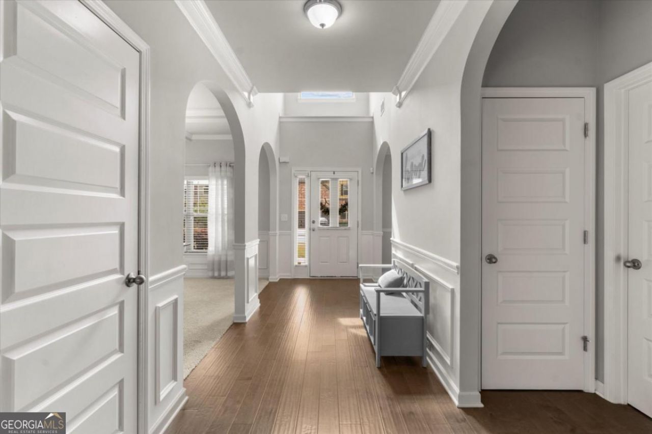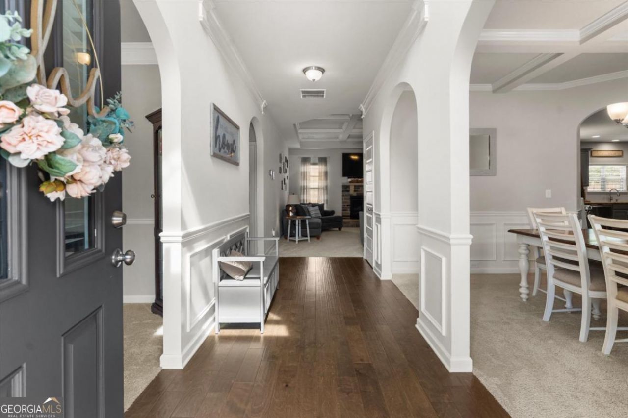Located in one of Loganville's most desirable communities, this beautifully designed home offers coffered ceilings and elegant arched entryways that set a warm, inviting tone. The kitchen includes granite countertops, a surface cooktop, and a center island, opening seamlessly to the spacious living room. The main level also features a large dining room, a versatile office or flex space, and a private guest bedroom with a full bath. Upstairs offers four bedrooms, three baths, and a laundry room with washer and dryer. The oversized primary suite provides a large sitting area ideal for a private retreat or additional living space, along with a walk-in closet and an en-suite bath with double vanities. Enjoy the back patio and screened-in porch. The fenced-in backyard adds privacy and space for outdoor living. Residents also enjoy resort-style amenities including a pool with waterslide, tennis, pickleball, playground, and a rentable clubhouse-making this home the perfect blend of comfort, space, and community living.