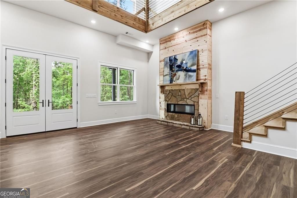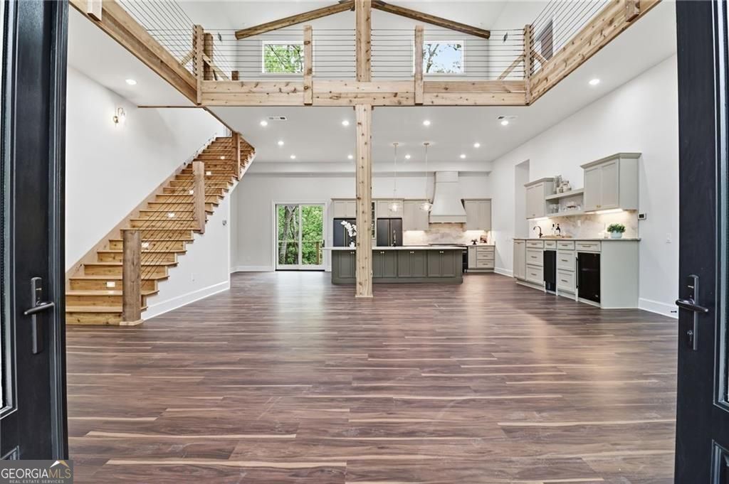 This Modern Luxury NEW CONSTRUCTION home is just minutes from Lake Allatoona and the trails of Red Top Mountain State Park. Custom-built modern farmhouse delivers architectural presence, lifestyle flexibility, and refined design - all within easy reach of Cartersville's dining, retail, and cultural amenities. Spanning over 4500+ square feet, the home is thoughtfully designed for the way you live. Dramatic two-story ceilings and expansive walls of windows flood the main living spaces with natural light, creating a sense of scale and openness. An open mezzanine overlooks the living room below, adding architectural interest and flexible additional space. At the center, the chef's kitchen anchors the home with an oversized leathered quartz island and a beautifully appointed butler's scullery - ideal for both elevated entertaining and everyday ease. Guests enjoy a main level bedroom w/ensuite bath. The primary suite is privately positioned upstairs, offering its own covered deck and serene wooded views - a true retreat designed for quiet mornings and relaxed evenings away from the main living areas. An additional 3 bedrooms each with en-suite bath completes the ease of living. A defining feature of the property is the approximately 2,700-square-foot heated garage in addition to the standard two-car garage - accommodating 8-10 vehicles in stackable configuration. An exceptional opportunity for collectors, automotive enthusiasts, boat owners, or those seeking expansive hobby space. An expansive rear deck spans the length of the home, creating seamless indoor-outdoor living and a peaceful backdrop after days spent on the lake or trails. With convenient access to I-75 and nearby LakePoint Sports Complex, this residence offers modern luxury with a true lake lifestyle. Modern luxury. Natural privacy. Designed for the way you live. You need this place! THIS IS MORE THAN JUST A HOME...It's a custom-crafted experience, designed for those who live fully and want a home that keeps pace with their passions to live your best life!!!