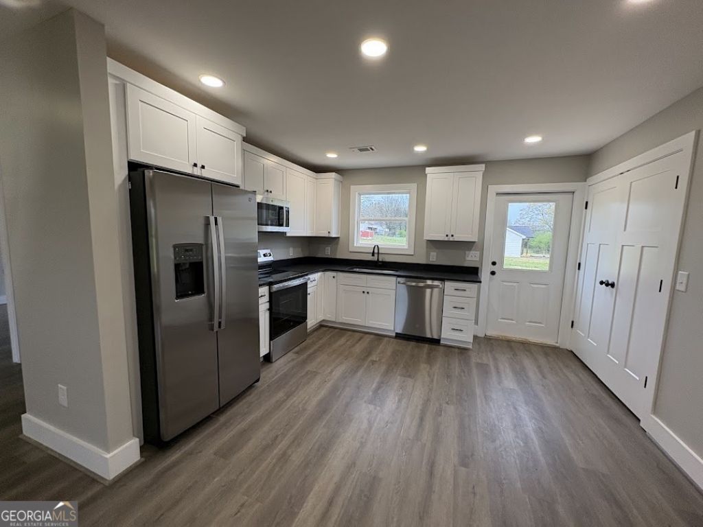 New construction in city of Bowersville on quite street, LVP floors, granite countertops, stainless steel appliances, side by side refrigerator, concrete driveway, 0.75 acre corner lot. Home includes a 1 year builder warranty and seller will provide a 2/10 warranty. Preferred lender is Susan Corley with Stonegate Mortgage. Owner/agent. Note: taxes are year 2025 land taxes only - house will be assessed for 2026 tax year.