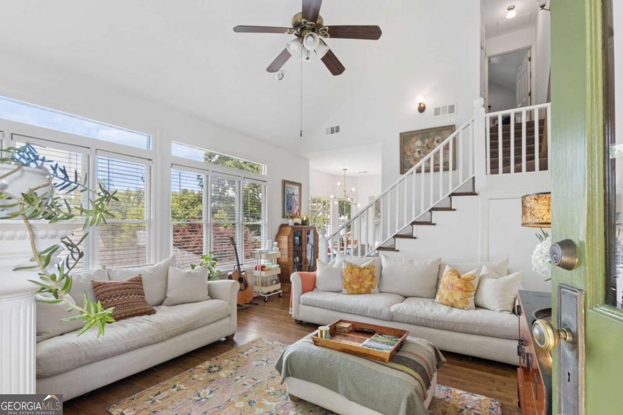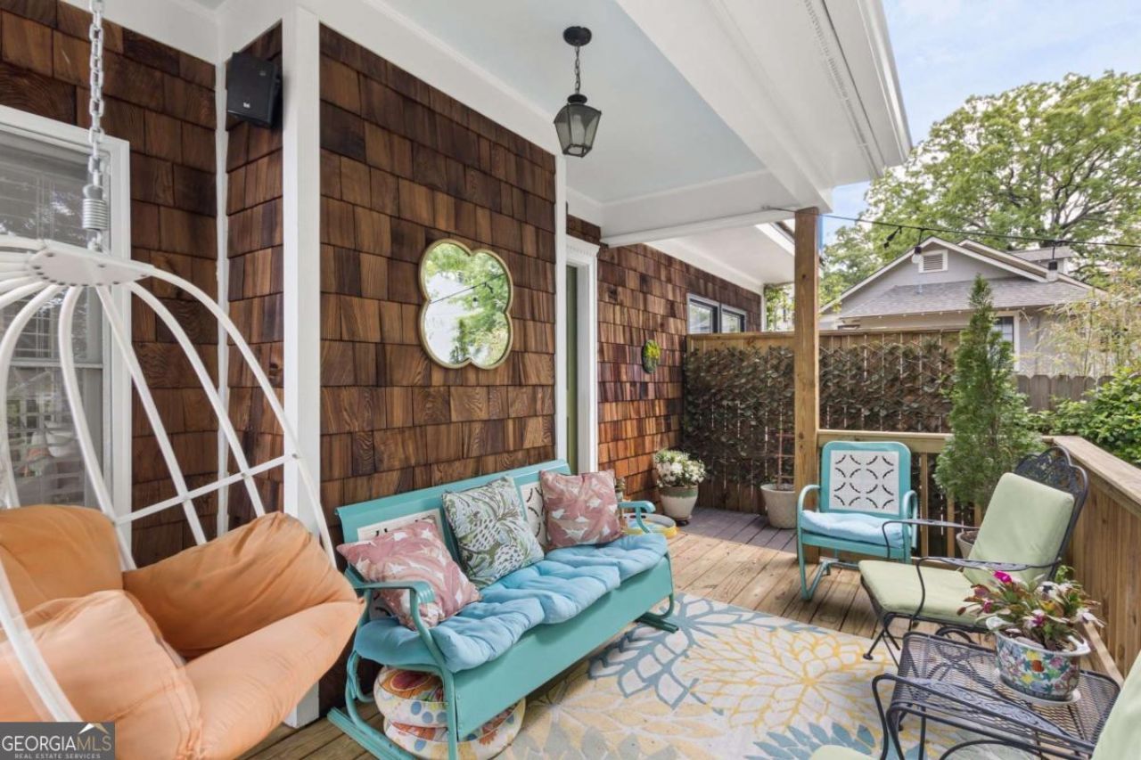 Meet your Intown ATL treehouse - perched above it all in the heart of Virginia-Highland. Sitting high at the top of Barnett Street, this unique 2 bed / 2 bath townhome/duplex style home delivers on West Coast vibes, privacy, and front-row access to everything that makes INtown living so addictive. With Piedmont Park, Ponce City Market /ATL Beltline, and the energy of Va-Hi all just steps away, you can park the car, go out, and walk everywhere. Bring the party back home, kick back, and take it all in on any of the multiple outdoor spaces that just hit different here. A private balcony, private deck, and two patio areas - all overlooking the neighborhood with peekaboo Midtown skyline views. Quietly enjoying morning coffee is elite up here. Evening wine is even better. Inside, it's all about character & light. The vaulted ceilings join a full wall of north facing windows to craft a bright, airy living space. The open layout keeps everything connected; perfect for hosting, pre-gaming, or just spreading out. The main level bedroom is a great space for guests, while the upstairs primary suite is your own escape - complete with its own private balcony. No HOA keeps costs lower and means it is rental friendly. Keep it all to yourself.....or let it make you some money (World Cup, anyone?). 2-car garage and ample, easy street parking for guests. In a neighborhood full of eclectic homes and character, this one truly stands out! To watch a video tour, go to @jtrimmer.atl on Instagram.