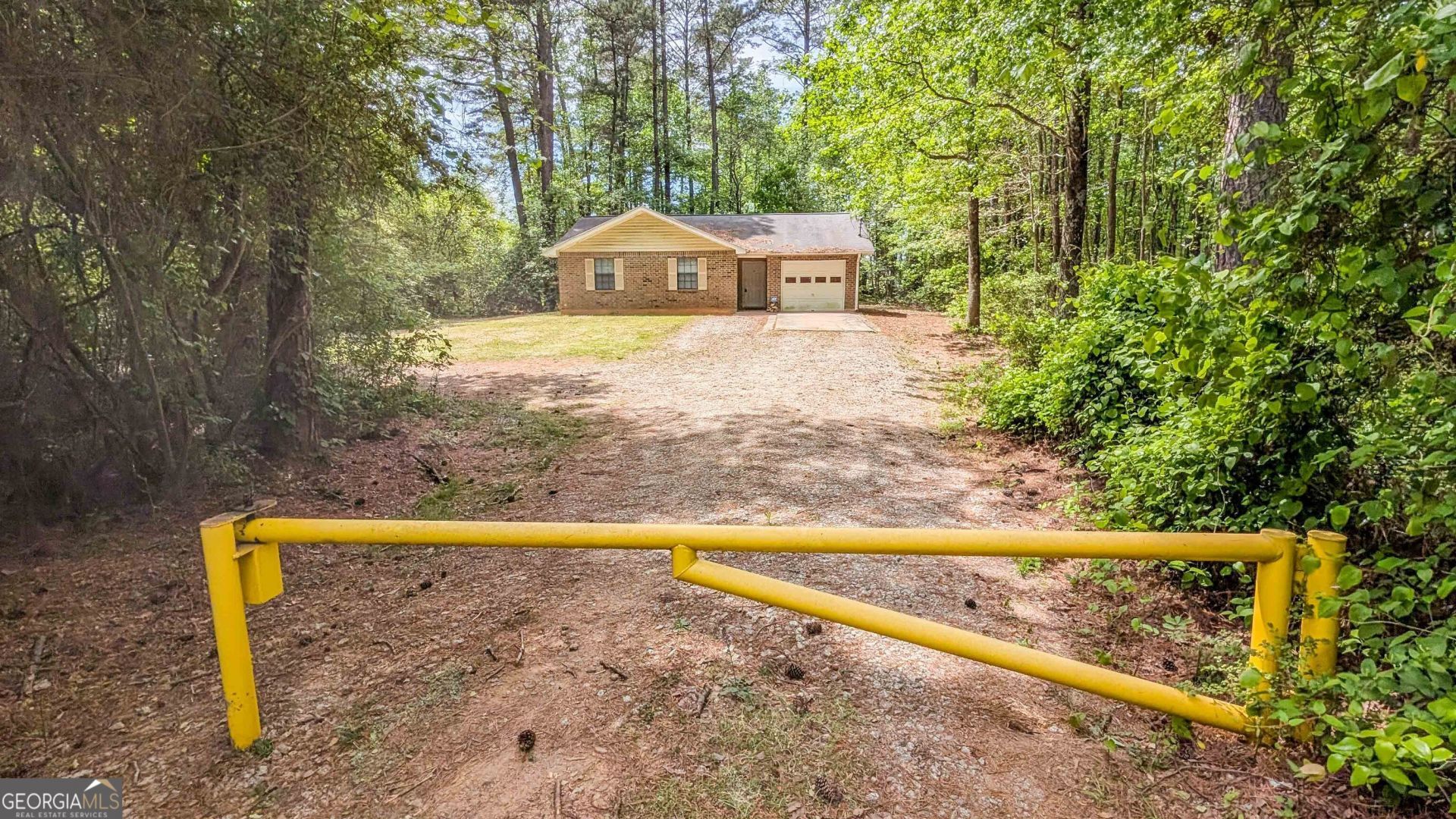Opportunity knocks on Hobgood Road in Fairburn, GA! Solid brick ranch nestled on a private, wooded 1-acre lot behind a custom gated entry - offering the peace and elbow room today's buyers are searching for. This 3BR/1BA starter home is priced to reflect its as-is condition and is ready for your personal touch. Hardwood floors in main living area / galley kitchen with oak cabinetry, pantry, and electric range / one-car garage with interior access and electric water heater / heat pump HVAC / septic system. All three bedrooms are with ceiling fans and closets. The private setting, brick exterior, and attached garage give this home exceptional upside for the buyer or investor willing to bring their vision. Cosmetic updates will go a long way here - priced accordingly. Sold strictly as-is. Showingtime then go show!