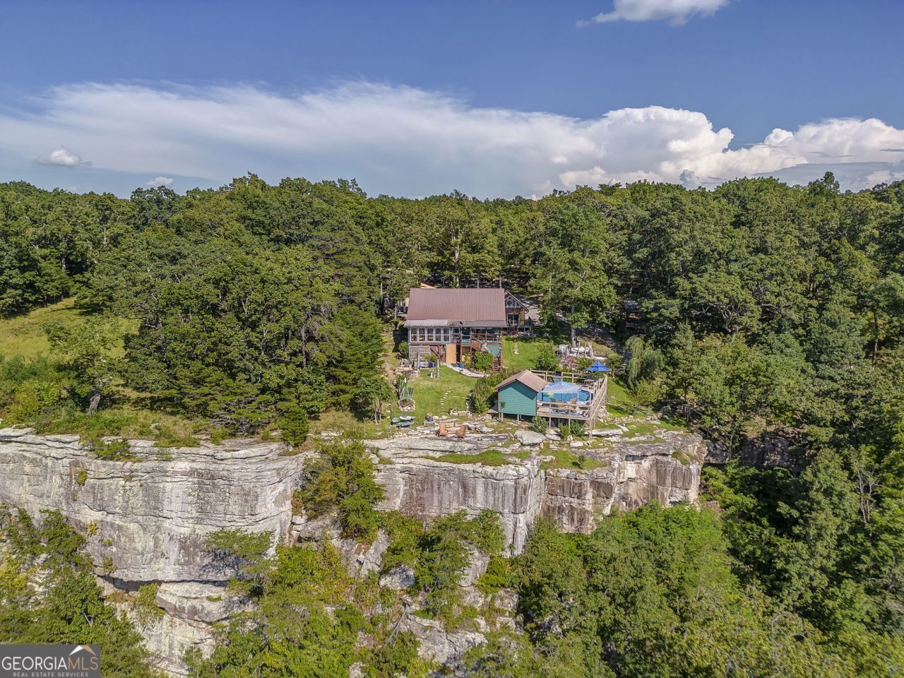 Perched atop the West Brow Cliff, with a very unobstructed west view of Alabama Mountains, this one-of-a-kind property offers a cabin and tiny home on 2.24 acres. Many possibilities and potential for adding rentals. Could be a rock climbers dream! The main home is a custom, artsy retreat with three spacious bedrooms, 2 bathrooms, a loft, and soaring ceilings that fill the home with natural sunlight. Besides a mini split and gas fireplace to keep you comfortable the 4-season sunroom supports mountain views year-round. Also includes an open air back porch to enjoy good weather with the perfect balance of comfort and mountain charm. The front porch features a hot tub, while outside you'll find an above-ground pool with pool house and large deck ideal for entertaining. The rock cliffs along the brow provide an inspiring vantage point, where each day brings a new scene-brilliantly clear skies, rolling clouds, and ever-changing views of the valley below. Beneath the home, you'll find a garage and workshop space perfect for storage or projects. The grounds are just as impressive, with raised bed gardens, a variety of fruit trees, a greenhouse, and thoughtfully designed drainage improvements throughout. The property also includes a separate 1-bedroom, 1-bath home with kitchen, living room, and loft, offering incredible options for a family compound, guest space, or income-producing rental. Two detached pole barns, a storage shed, circle drive, and even caves for rock climbing enthusiasts enhance this unique mountain escape. With new mini splits, additional insulation, and encapsulated crawlspace, this property blends modern updates with timeless natural beauty. Whether you're seeking a private retreat, an entertainer's paradise, or an investment opportunity, this remarkable property on the brow delivers it all.