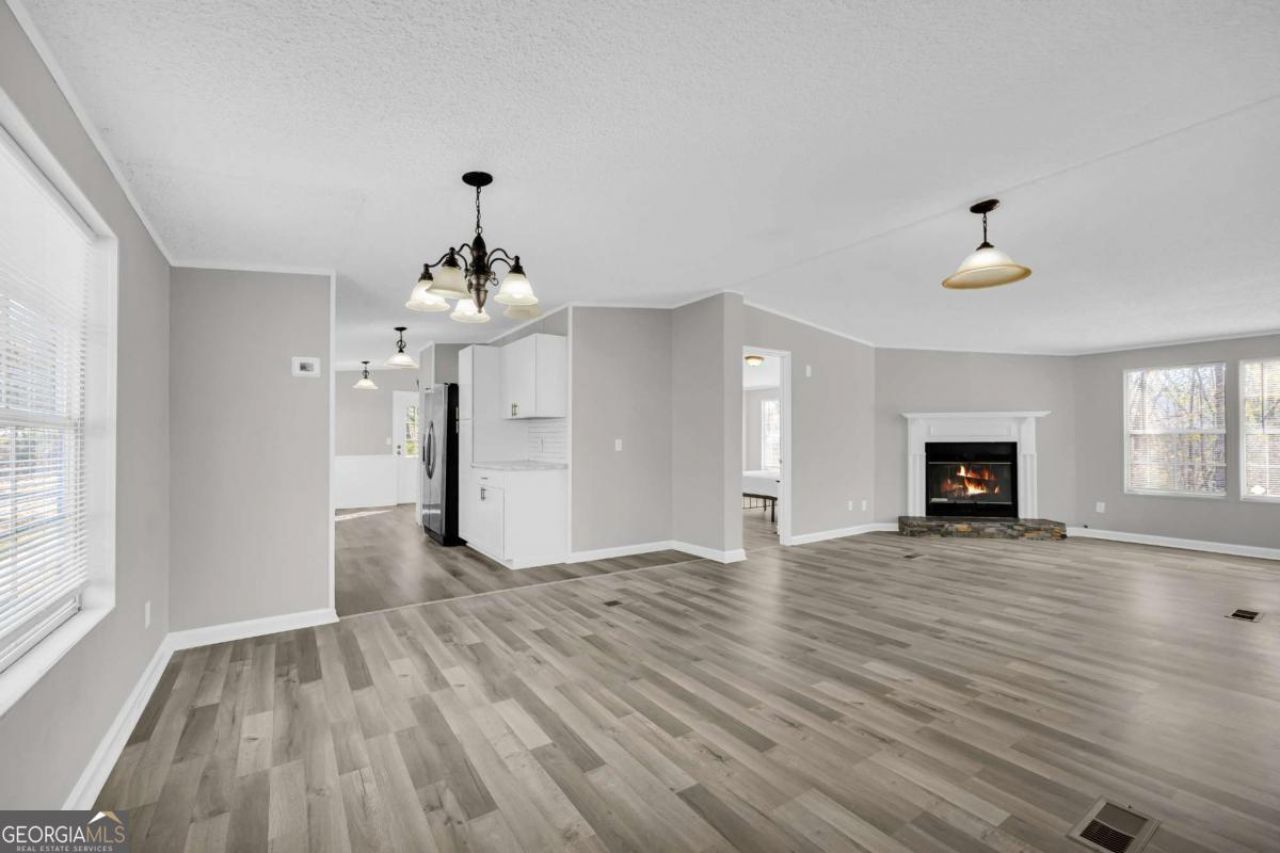 Updated 3 bedroom 2 bath manufactured home located in Nicholson, GA. Open living room with a corner fireplace and dining area large enough for a farmhouse table. Kitchen with shaker style white cabinets, stainless appliances and a breakfast nook. Laundry off the breakfast area. Split bedroom plan with primary suite off the living room. 2 secondary bedrooms down the hall and a full bathroom. All bedrooms have walk in closets. New 10 x 12 outbuilding recently added for extra storage. Home is on a permanent foundation and title is retired. New roof completed in 2025 with transferable warranty. Septic was pumped Jan 2025. Home is convenient to Hwy 441, Banks Crossing and Athens.
