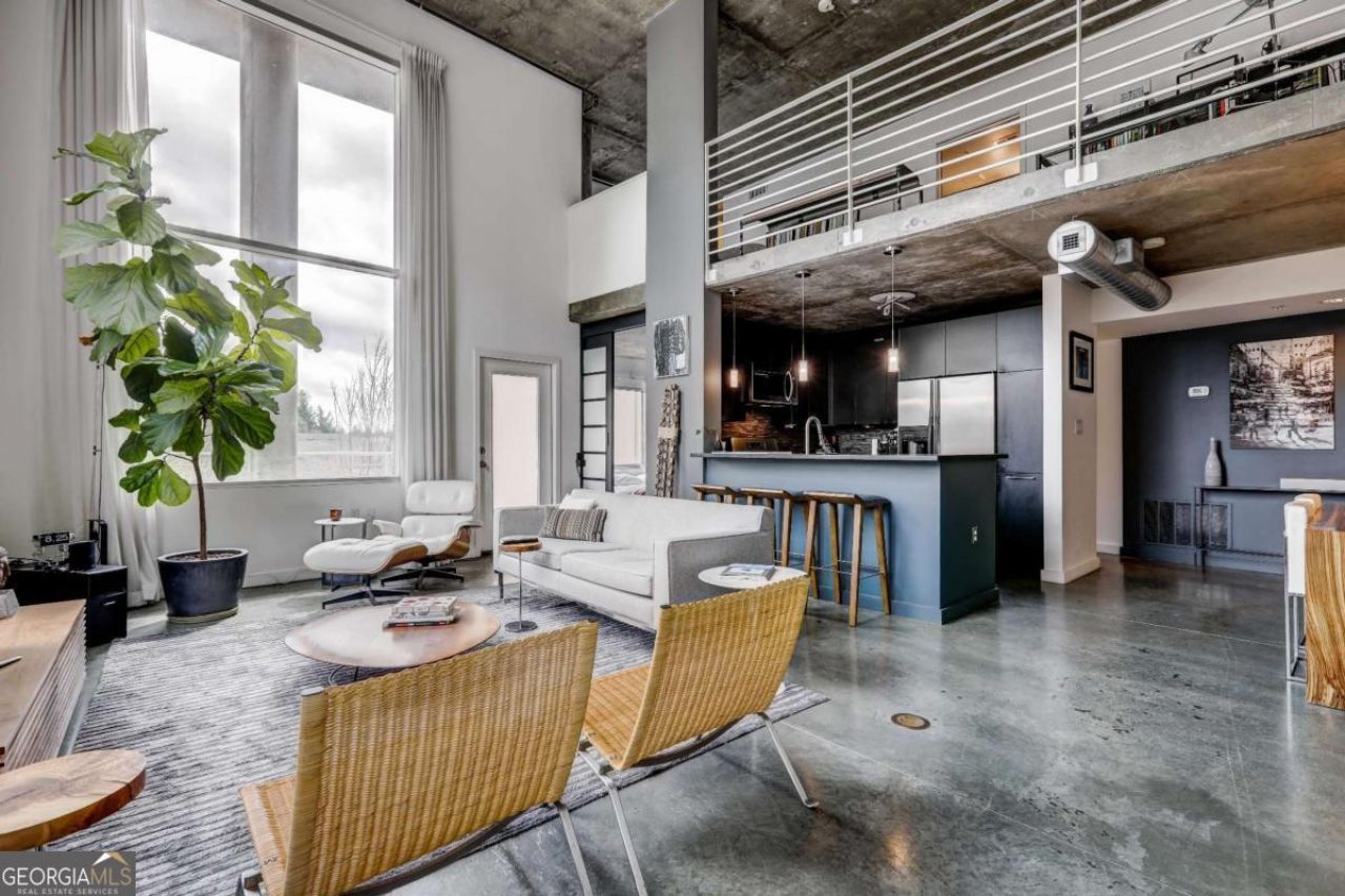 Luxury living on The Beltine East Side trail! This stunning 2 bedroom/2 bath Corner Unit on the top floor of Copenhill Lofts is just steps away from some of Atlanta's best restaurants, recreation and shopping. The unit boasts an open living space with 20 foot ceilings and massive windows with amazing tree top views and a private walk-out balcony surrounded by greenery. The Chef's Kitchen features stone countertops, sleek cabinetry, stainless steel appliances, elevated bar, upscale lighting, and direct views to the sunlit two story great room and dining area. Enjoy the full bedroom + full bath on the main level or convert it into your work-from-home office or gym. The second floor includes the enclosed primary bedroom + walk-in closet + newly renovated ensuite bathroom + large sitting area/office space + laundry room with washer/dryer. Relax in the large courtyard which is a maze of Zen Gardens. The unit includes two reserved parking spaces in secure garage + one storage unit. Copenhill Lofts is conveniently located just a short stroll to Inman Park, Old Fourth Ward, Midtown and Virginia Highlands. Enjoy the close proximity of Ponce City Markt, Krog Street, Freedom Park, Whole Foods and the PATH Greenway.