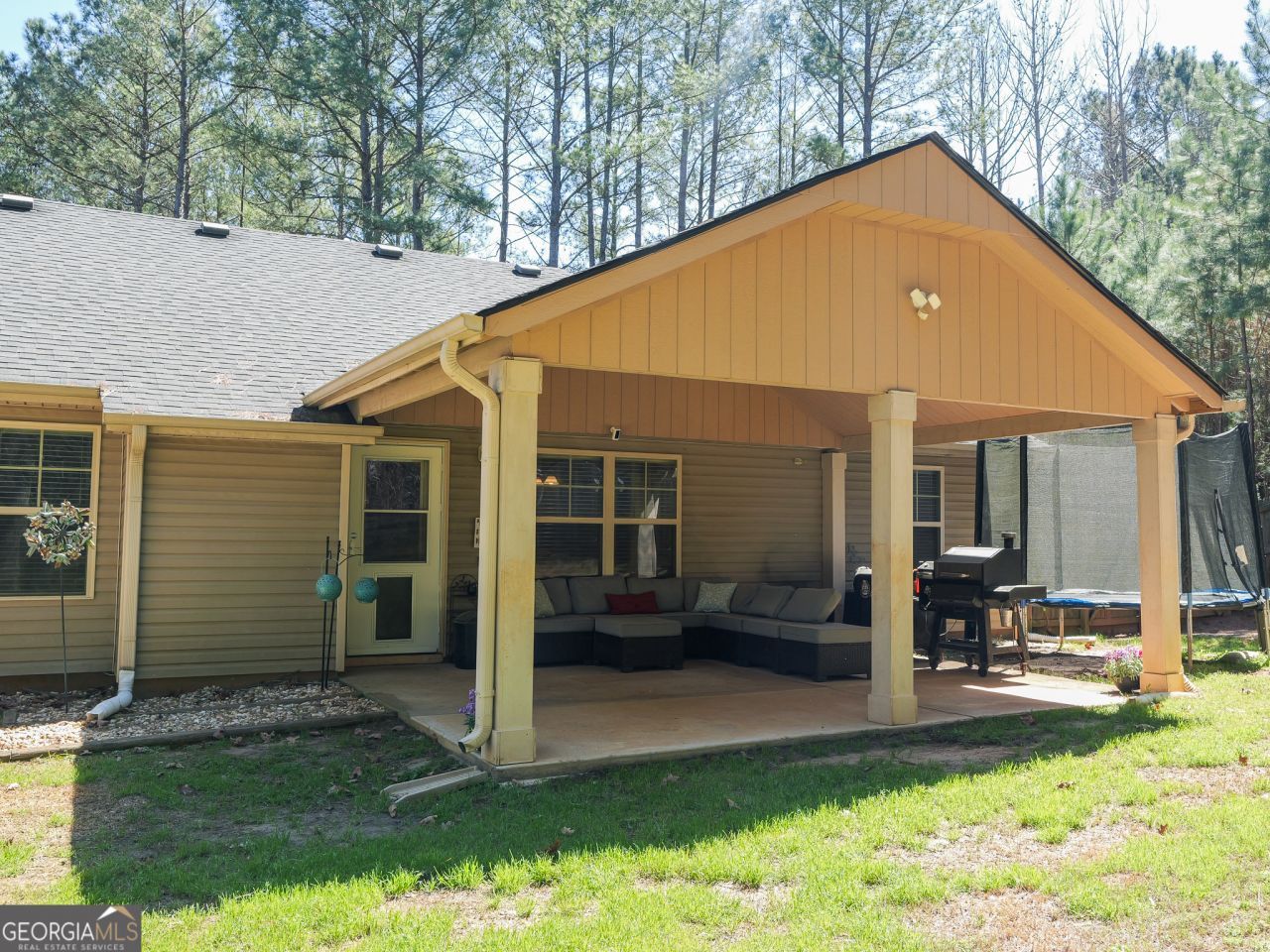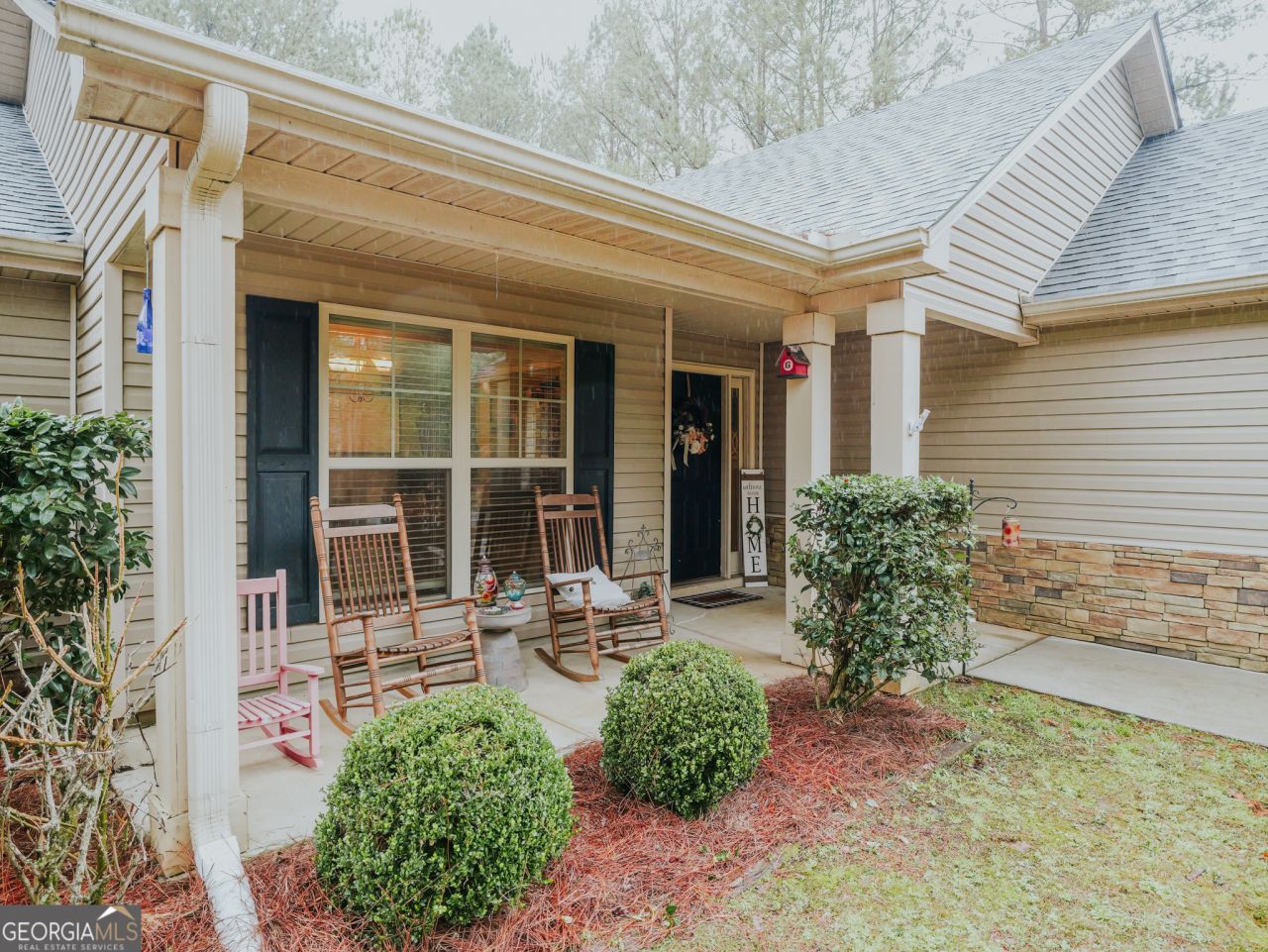 Sweet Senoia Ranch nestled on a quiet cul-de-sac. You will fall in love with the massive covered patio! It is the perfect spot to gather for game day, relaxing nights, or morning coffee. The interior is gleaming with beautiful flooring, an open concept floor plan, huge great-room with vaulted ceiling, and surround sound speakers. The generous kitchen features granite countertops, a walk in pantry, and a breakfast bar! The owner's retreat is spacious and fresh with brand new carpet and padding! It features a nice walk-in closet, too. On the opposite side of the home are two additional bedrooms and a full bath. The backyard is fenced and the outbuilding remains with the home. Minutes to vibrant Senoia where you can enjoy the Farmer's Market on Saturdays, the restaurants and shopping, many festivals throughout the year, and the new Publix. You are close to community ball fields and the library. WELCOME HOME!