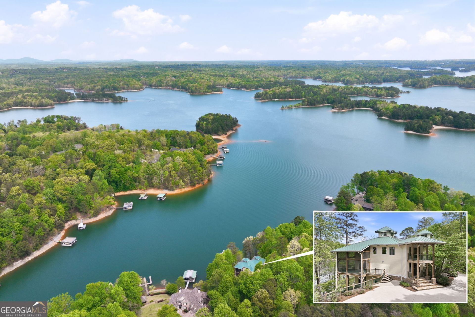 Enjoy relaxed Lake Lanier Living with long range views and your own deep water private twin slip party dock, just steps to the water! Welcome to a truly one-of-a-kind luxury timber-frame retreat with three finished levels and multiple outdoor entertaining areas. Crafted with Douglas Fir timbers sourced from Western Canada and assembled on-site in a traditional barn-raising process, this home pairs exceptional construction with the energy efficiency of 9 engineered SIPP panels. Nestled on 1.21 private, wooded acres with no HOA, this property is a rare opportunity on Lake Lanier. Step inside the main level and take in the panoramic lake vistas framed by expansive windows and Heart Pine floors reclaimed from a historic South Carolina cotton mill. Unique architectural character continues with custom stairs and handrails reclaimed from a Kentucky whiskey distillery, blending warmth and craftsmanship throughout. The open-concept main level offers: Nice open kitchen including a Gas Cooktop and granite counter with island. Expansive living area with walls of glass overlooking the lake, Two bedrooms, One full bath and one half bath, A large screened, covered rocking-chair porch with a sweeping water view, A spacious open deck with great water views ideal for entertaining or unwinding There is Ample room on the property for a future garage or guest house. The entire upper level serves as a private owner's retreat, featuring a spacious primary suite with its own private balcony overlooking Lake Lanier-perfect for sunrise coffee or evening sunsets. The suite includes a generous bath with double vanities and a walk-in closet. Includes a loft area with a library/reading area or office and magnificent views. The terrace level extends the home's flexibility, offering: Two additional bedrooms One full bath and one half bath A covered patio with Paver Floor, and year-round lake views. At the shoreline, enjoy a 32' x 32' Martin Docks double-slip dock Situated on Deep Water with IPE Brazilian hardwood, a lowered launch area for easy kayak access, power, shoreline steps, and rip rap already in place. Whether your passion is boating, fishing, or relaxing by the water, this setup is ready for your lake lifestyle. Privacy, craftsmanship, and captivating lake views from every level-this property brings together the elements of a true Lake Lanier retreat. A Gainesville address in Forsyth County.