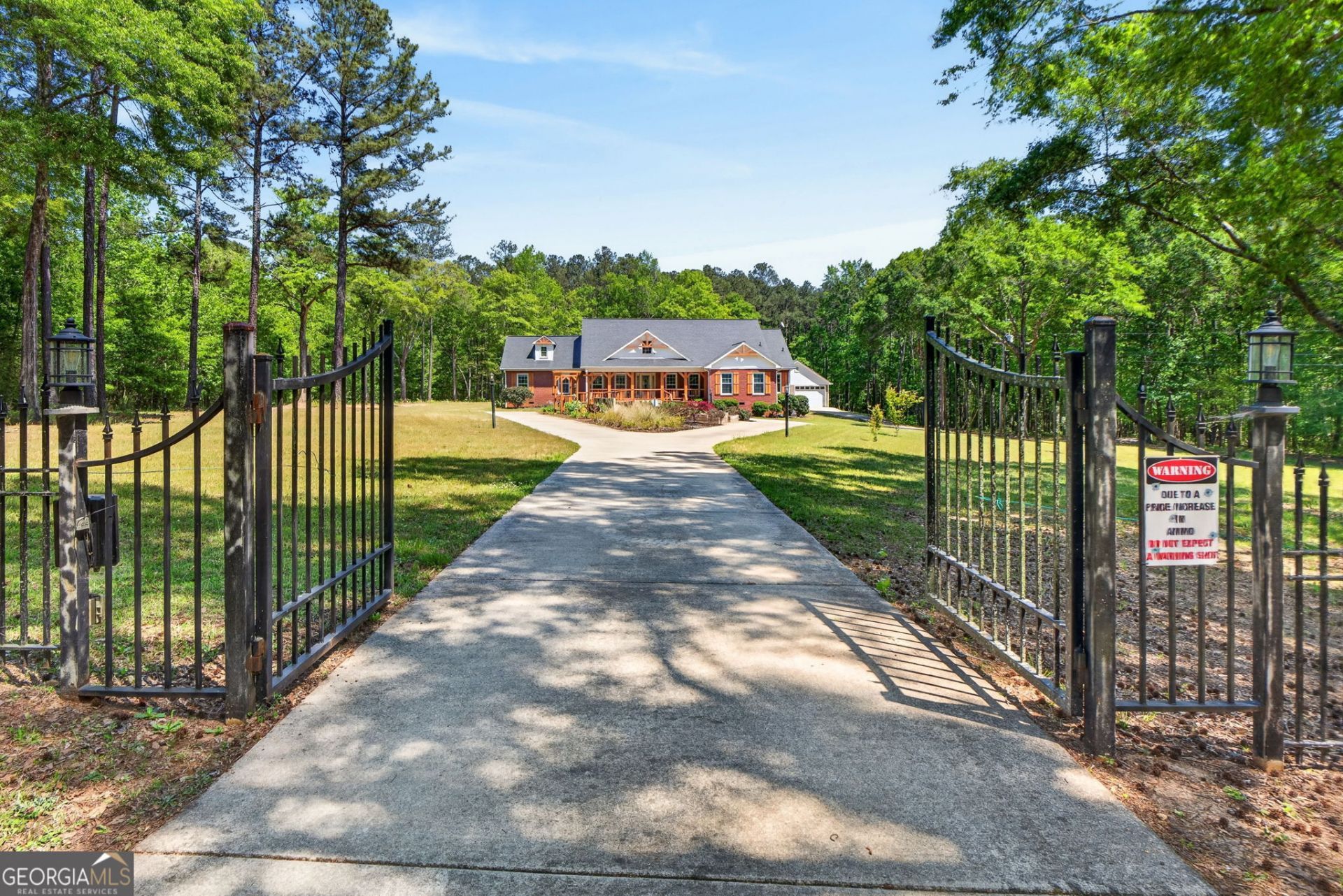 Welcome to your private retreat in the heart of Middle Georgia! Nestled on 14.5 acres, this stunning four-sided brick estate offers the perfect blend of luxury, space, and peaceful country living-ideal for those looking to escape the hustle of city life. Set far off the road behind a privacy-coded gate, a long concrete driveway leads you to the home, opening into a grand circular drive with an impressive fire pit and seating area-perfect for gathering and entertaining under the stars. Boasting over 5,288 square feet, this spacious home is designed for both comfort and entertaining. Inside, you'll find 7 bedrooms and 4.5 bathrooms, including a primary suite on the main level. The kitchen features granite countertops, soft-close cabinetry, and stainless steel appliances, offering both style and functionality. The home offers expansive living and entertaining spaces, including a large screened-in porch overlooking the private backyard-ideal for relaxing mornings or hosting guests. Outdoors, the property is beautifully landscaped with blooming flowers throughout, creating a serene and inviting setting. Additional features include: * RV parking plus extra space for golf carts or lawn equipment * A separate shop with attached garage, already wired-perfect for storage, hobbies, or a workspace * Plenty of open land for a mini farm, recreation, or future expansion Whether you're searching for a private oasis, a place to entertain, or a peaceful retreat to call home, this property offers endless possibilities. Conveniently located yet tucked away, it's a rare opportunity for out-of-state buyers or those relocating to Middle Georgia seeking space, privacy, and Southern charm.